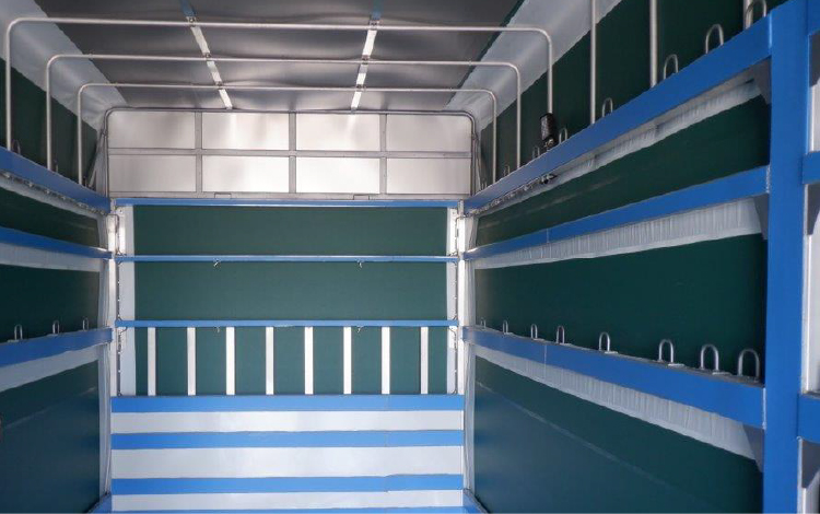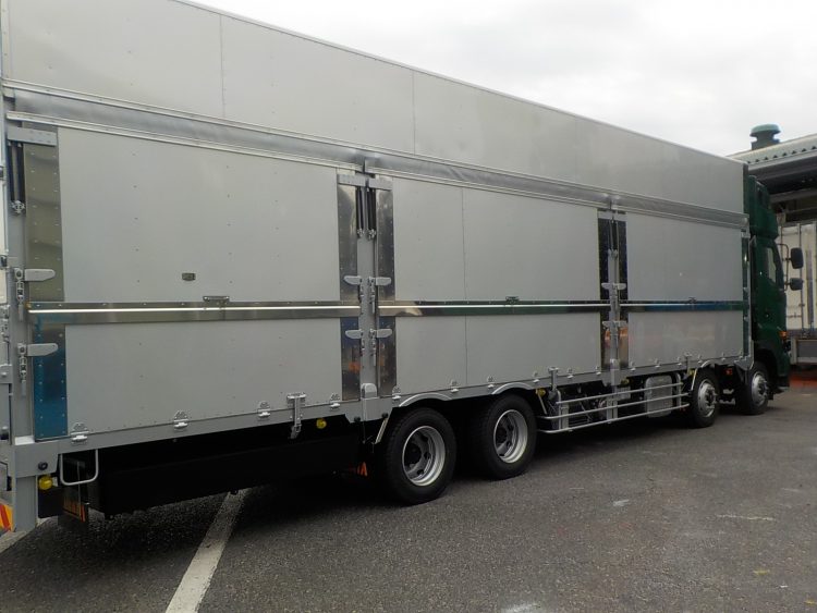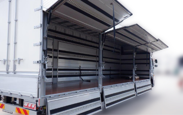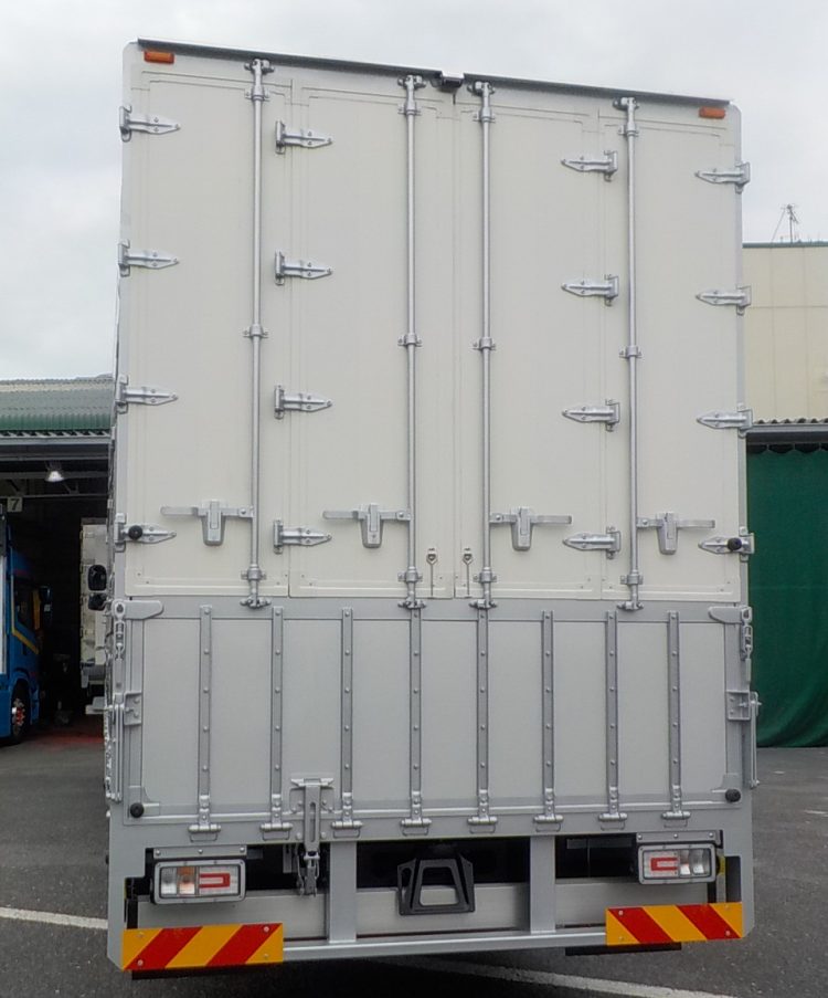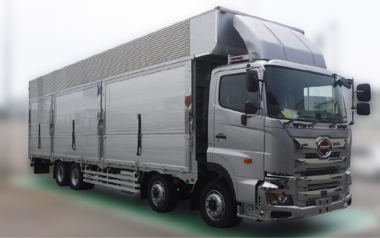 Bodyボデー ドラム缶積車 総重量25トンドラム缶積車 特徴 バランスボデー式 総重量25トンドラム缶積車 特徴 バランスボデー式 リヤー観音扉(下部アオリ付)7方開式 総重量8トンドラム缶積車 特徴 積載量 2950kg リヤー観音扉式 BACK